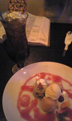 ドリンクはブルーハワイの上になんだかよく分からない赤いゼリー(メニューには書いてあったけど忘れた)と花…。