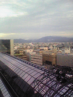 西本願寺にも行こうかと思ったけど、取りやめてホテル最上階の渡り廊下に登ってみることに。
